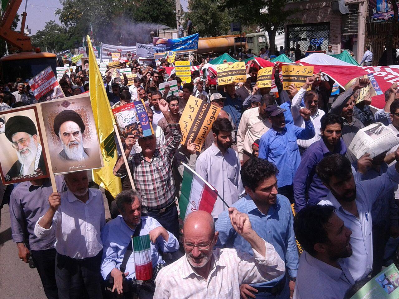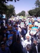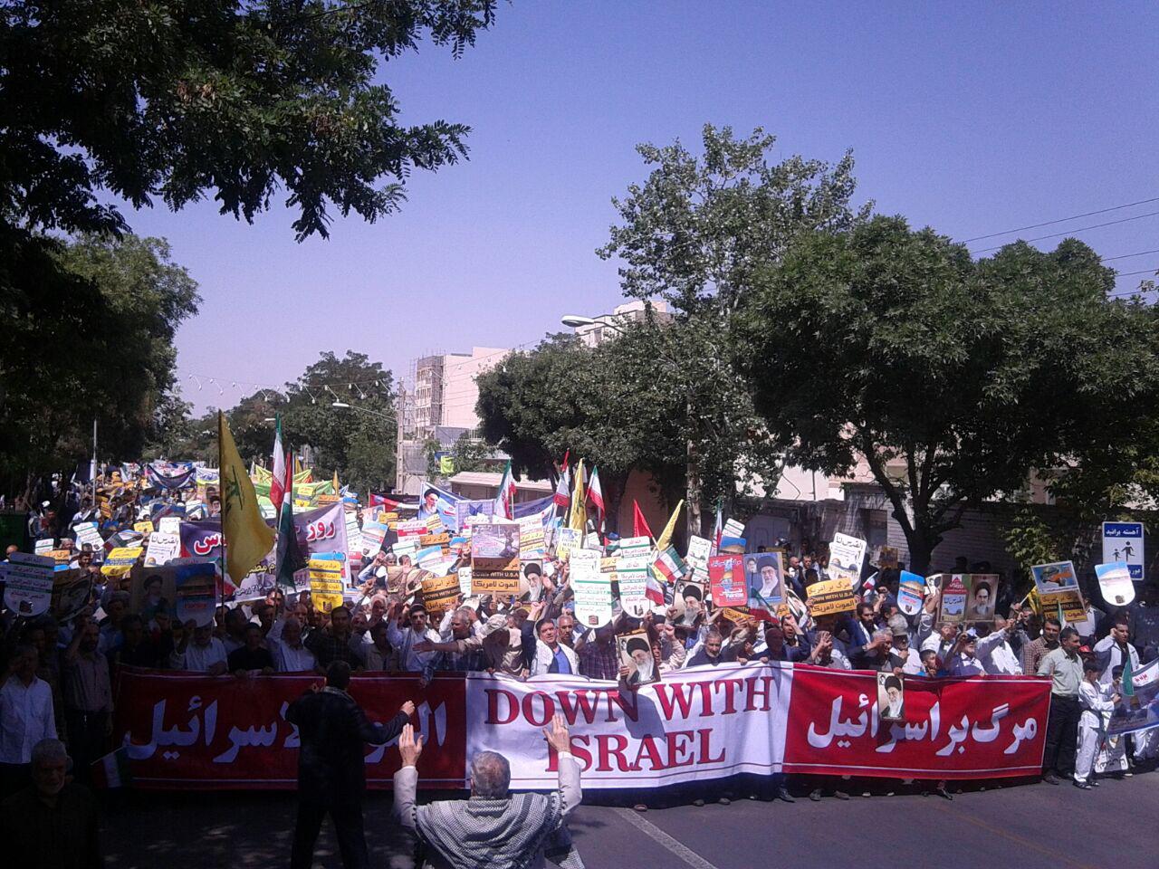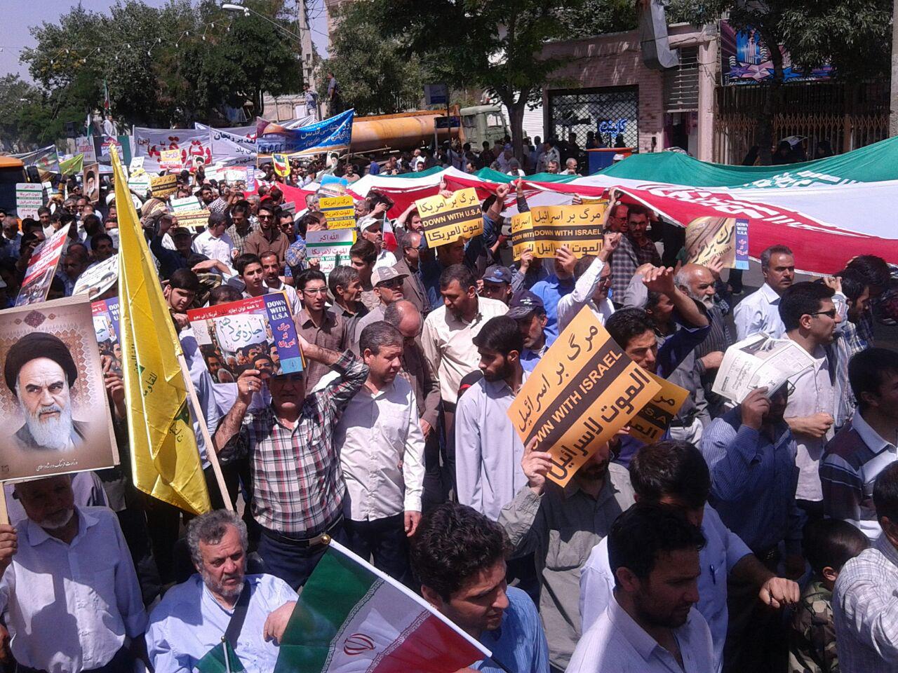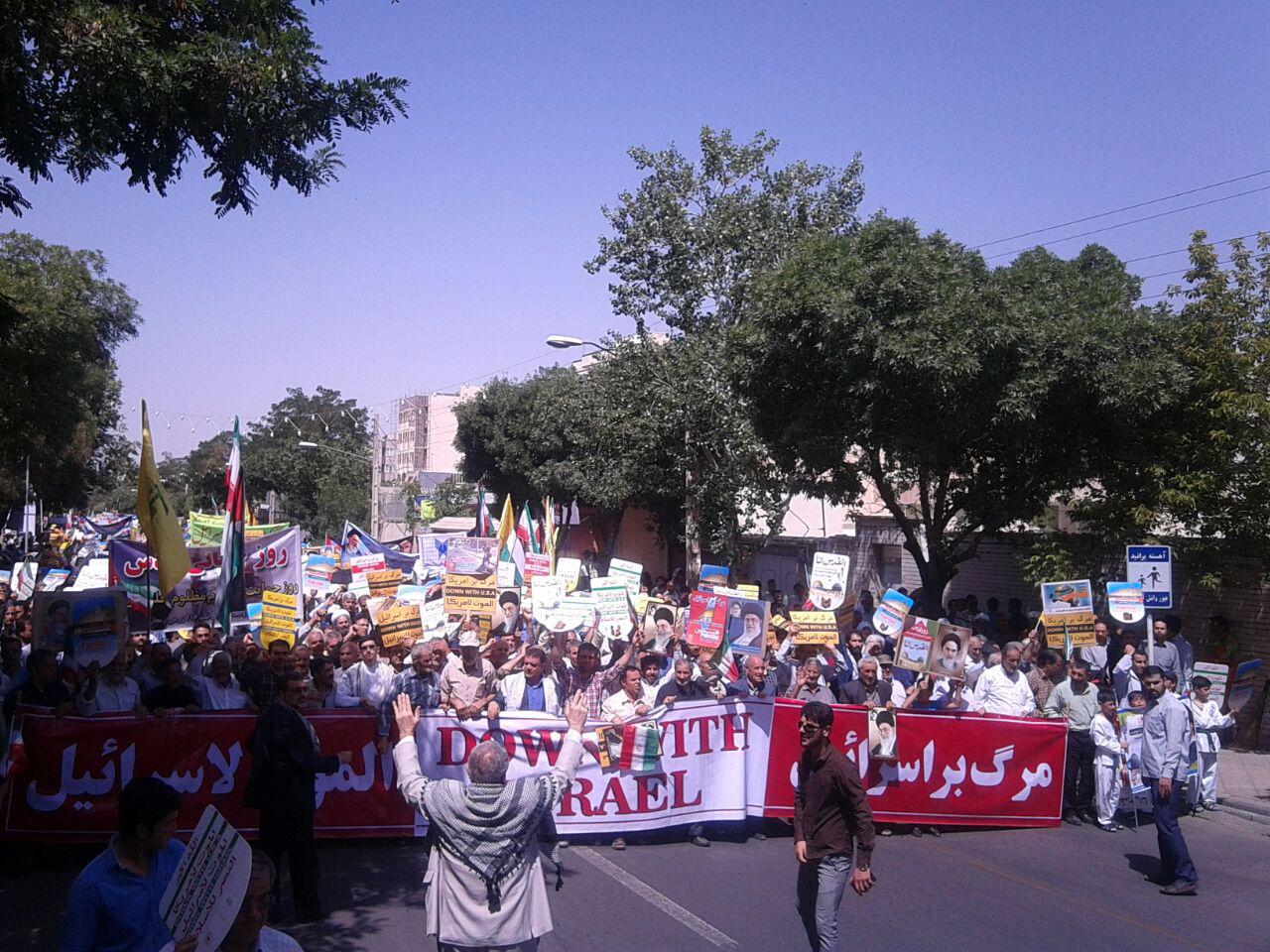 به گزارش خبرگزاری صداوسیما ، امروزروزه داران زنجانی یک صدا فریاد مرگ براسرائیل غاصب ، مرگ برآمریکا ، الله اکبر الله اکبر، ویا ایها المسلمین اتحدو اتحدو را سردادند وانزجارخودراازغده سرطانی وکودک کش اعلام کردند .