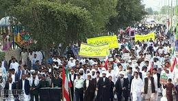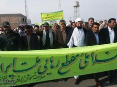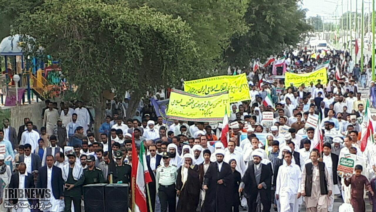 مردم شیعه و سنی سیستان و بلوچستان بار دیگر با سردادن شعارهایی در حمایت همه جانبه از رهبر معظم انقلاب و دستاوردهای انقلاب و نظام جمهوری اسلامی همنوا با ملت ایران، حماسه ای از عزت و اقتدار ایران و ایرانی را به نمایش گذاشتند.