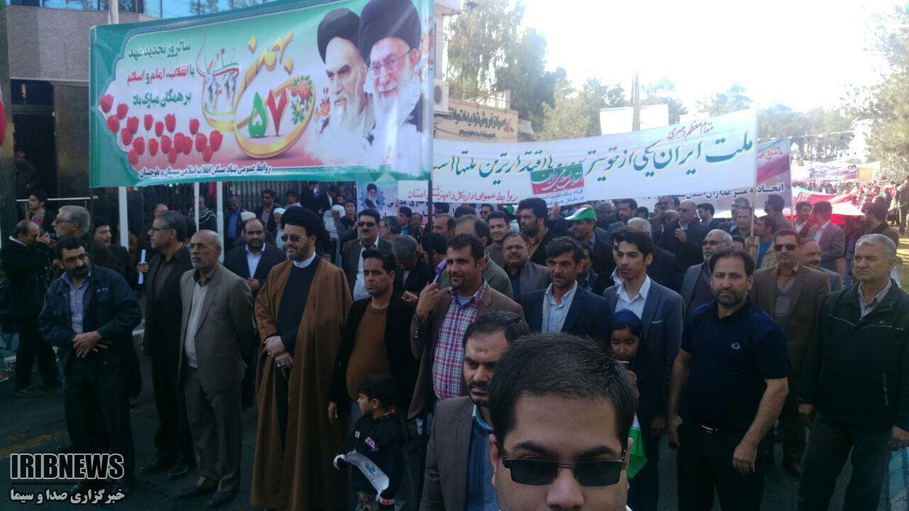 به گزارش خبرگزاری صدا و سیما مرکز سیستان و بلوچستان ، همزمان با یوم الله ۲۲ بهمن، راهپیمایی گسترده اقشار مختلف مردم سیستان و بلوچستان با لبیک به ندای رهبر معظم انقلاب و نشان دادن اقتدار ایران اسلامی در صحنه جهانی در بیش از 55 نقطه جمعیتی شهری و روستایی استان با شکوه خاصی آغاز شد.