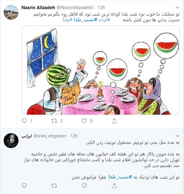 به گزارش سرویس فضای مجازی خبرگزاری صداوسیما؛ بخشی از محتوا‌های داغ‌های مجازی را که کاربران در فضای مجازی منتشر کرده اند با شما به اشتراک می‌گذاریم: #میلاد #شب_یلدا #فرانسه ژن_خوب #ضرغامی#