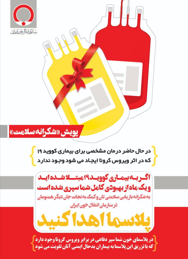 به گزارش خبرگزاری صدا و سیما مرکز خلیج فارس؛ ایمان زارعی گفت: برای نخستین بار مرکز اهدای پلاسمای بهبودیافتگان بیماری کووید ۱۹ (بخش آفرزیس) در اداره کل انتقال خون هرمزگان با هزینه یک میلیارد تومان راه اندازی شد وی درباره شرایط اهدا کنندان پلاسما گفت: افراد مبتلا به کرونا ۲۸ روز پس از بهبودی و با نظر پزشک و معاینه به مرکز انتقال خون استان مراجعه و پلاسمای خون خود را اهدا کنند. وی افزود: مراجعه کنندگان با در دست داشتن آزمایشهای پی سی آر و سرولوژی مثبت و سابقه بستری مراجعه کنند. مدیرکل انتقال خون هرمزگان گفت: سالن اهدای پلاسما از سالن اهدای خون جداست و همه شیوه نامههای بهداشتی در جداسازی پلاسمای خون رعایت میشود. ایمان زارعی افزود: سازمان انتقال خون برای گرفتن پلاسمای خون هر فرد یک و نیم تا دو میلیون تومان هزینه میکند، ولی برای بیمار مبتلا به کرونا رایگان است.