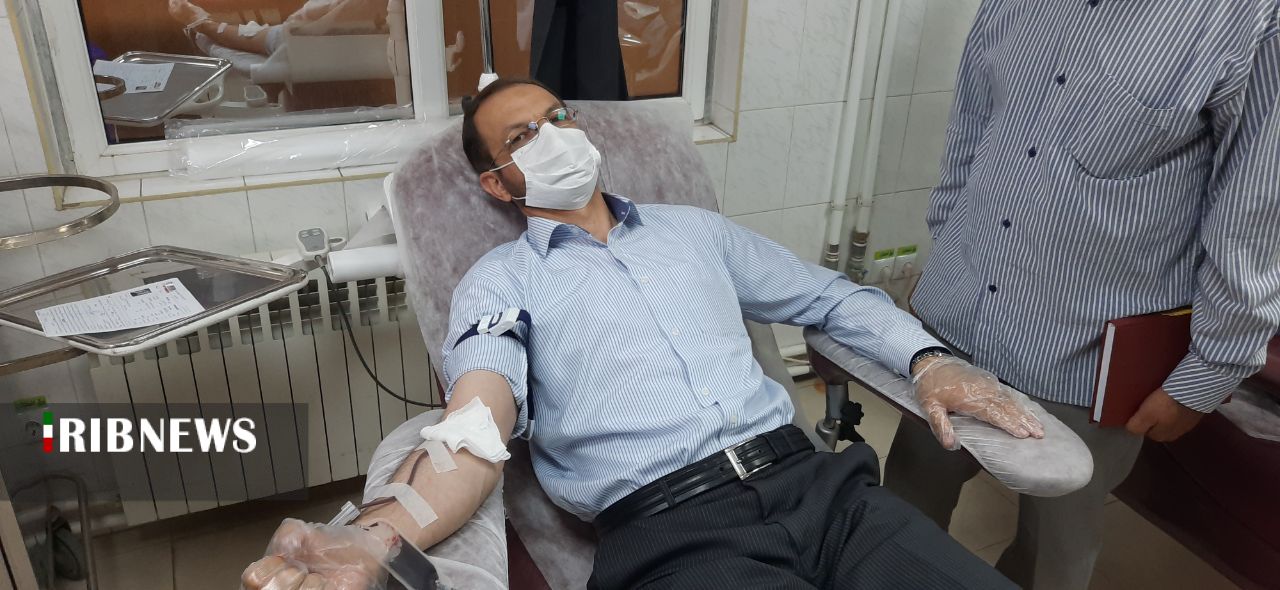 اهدای خون استاندار و جمعی از کارکنان صدا وسیمای مرکز اردبیل بمناسبت هفته انتفال خون
