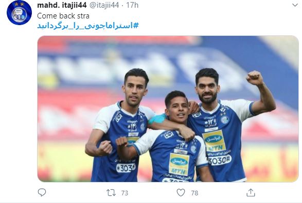 به گزارش شبکه مردم خبر گروه مجازی خبرگزاری صدا و سیما، استراماچونی را برگردانید؛ هشتگی که برای چندمین روز متوالی به ترند یک توئیتر فارسی تبدیل شده است.