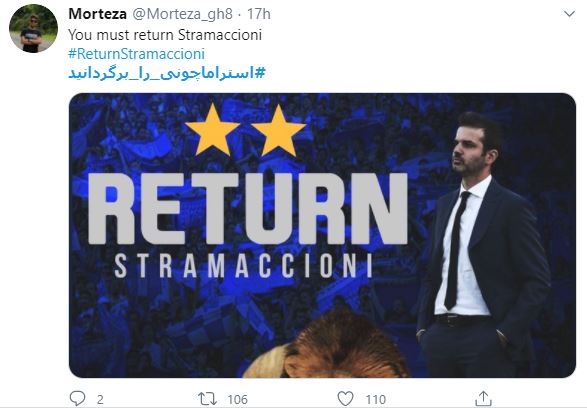اکنون آنهایی که نانشان در دلالی و بازی با احساسات میلیونها هوادار عاشق است برای بازگرداندن مرد ایتالیایی که در ایتالیا خریدار ندارد، به فضای مجازی متوسل شدهاند و برای آنکه نشان دهند این یک مطالبه عمومی است هشتگ «استراماچونی را برگردانید» را هدفمند ترند کردهاند.