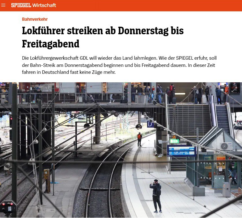 به گزارش سرویس بین الملل خبرگزاری صدا و سیما؛ از برلین، اعتصاب لوکوموتیورانان آلمان از ساعت امروز ۱۸ آغاز می‌شود و ۲۴ ساعت ادامه خواهد داشت.