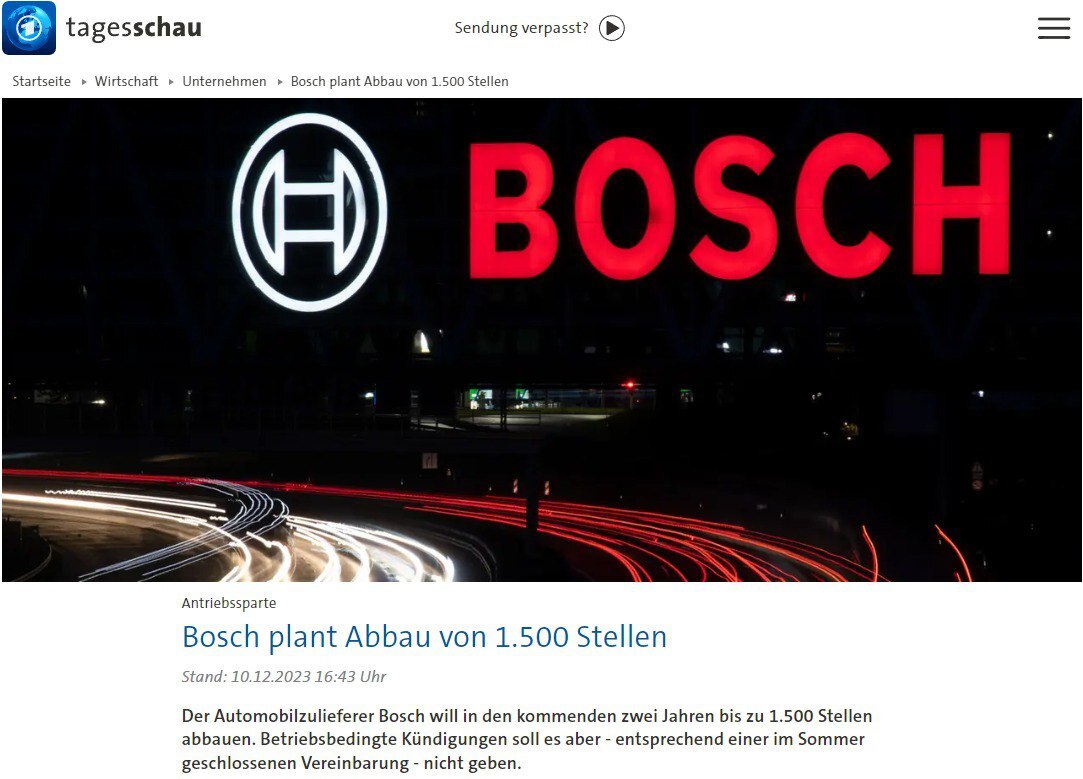 شرکت بوش آلمان اعلام کرد قصد دارد ۱۵۰۰ شغل را تا سال ۲۰۲۵ کاهش دهد.