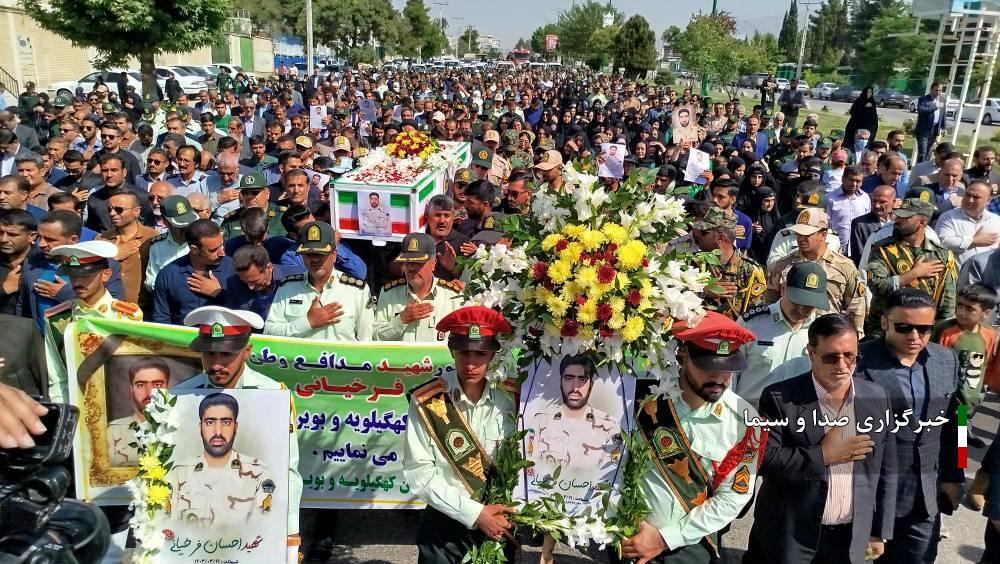 به گزارش خبرگزاری صدا و سیمای کهگیلویه و بویراحمد، مراسم تشییع پیکر پاک شهید والامقام عرصه امنیت استواریکم «احسان فرخیانی» ساعت ۸:۳۰ صبح امروز با حضور مسئولان و قشرهای مختلف مردم از مقابل ستاد انتظامی استان به سمت فلکه سنگی شهر یاسوج برگزار شد.