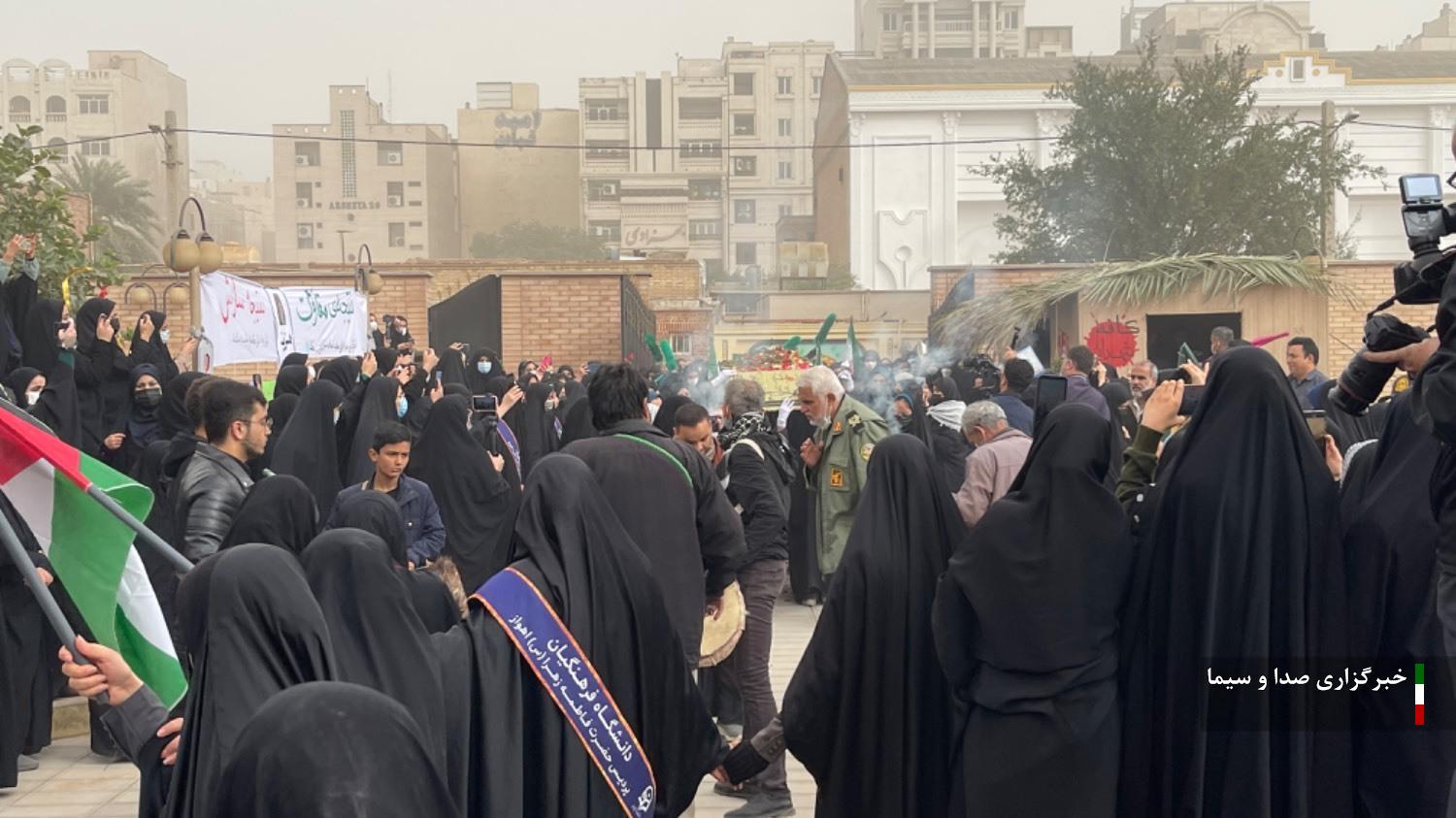 به گزارش خبرگزاری صدا و سیمای استان خوزستان، پردیس حضرت فاطمه الزهرا (س) اهواز تنها دانشگاهی بود که امروز در خوزستان تعطیل نیست، چون دانشجویان همراه با اقشار مختلف مردم بار دیگر درس ایثار و شهادت را مرور کردند.