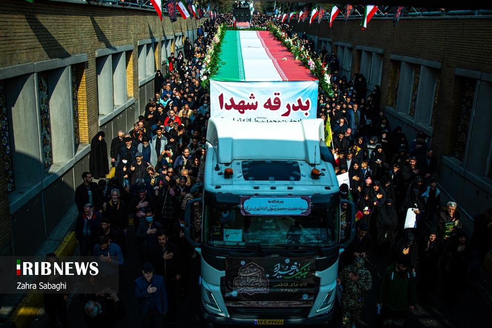 آیین تشییع پیکر پاک ۱۰۰ شهید گمنام دفاع مقدس صبح امروز دوشنبه ۳ آذر ۱۴۰۴ همزمان با سالروز شهادت مظلومانه حضرت زهرا (س) از مقابل دانشگاه تهران به سمت معراج شهدا با حضور مردم شهیدپرور برگزار شد.